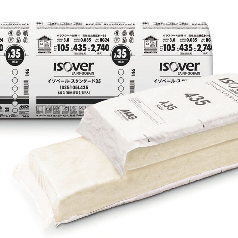 断熱材には、マグ イゾベール スタンダードを採用しています。ガラス繊維を主原料とした高性能グラスウールで、**密度16kg/㎥・熱伝導率0.038W/(m・K)**という優れた断熱性能を持ち、外気の暑さ・寒さをしっかり遮断します。