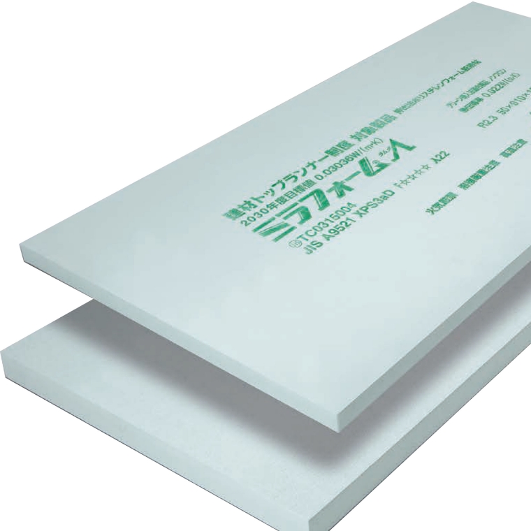 床断熱には、JSP ミラフォーム ラムダを採用しています。熱伝導率0.022W/(m・K)という優れた断熱性能を持つ高性能押出法ポリスチレンフォームで、床下からの冷気を効果的に遮断します。厚さ90mmを標準とし、断熱層をしっかり確保することで、冬でも足元から冷えにくく、快適な室内環境を実現します。
