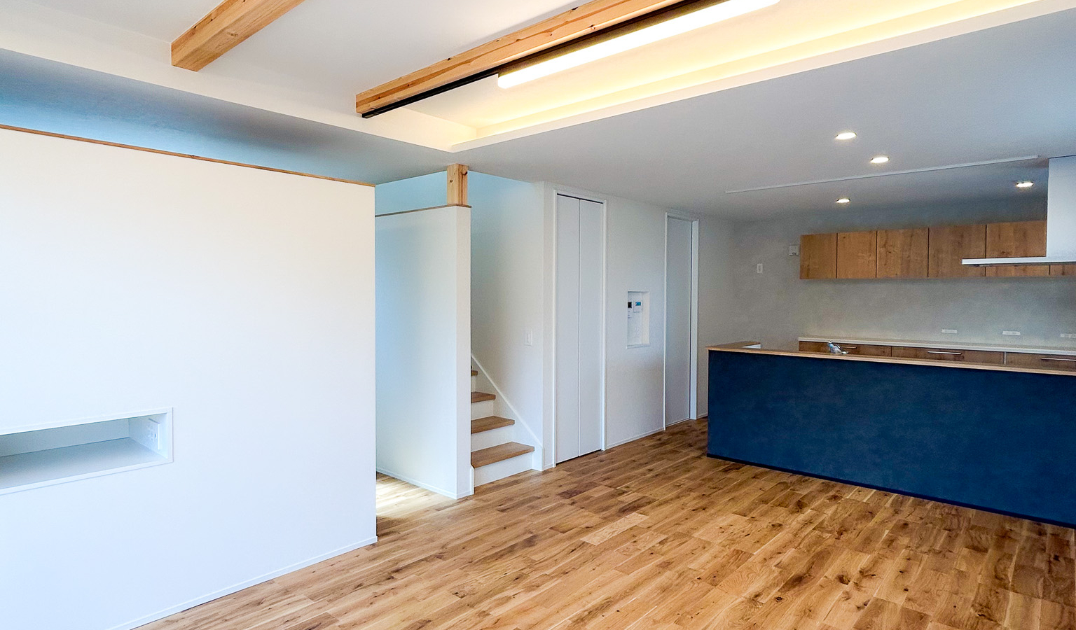 壁でしっかり仕切るのではなく、ほんの少し視線と空気が通るようにすることで、家全体に一体感が生まれ、家族がどこにいても自然と存在を感じられる距離感が生まれます。